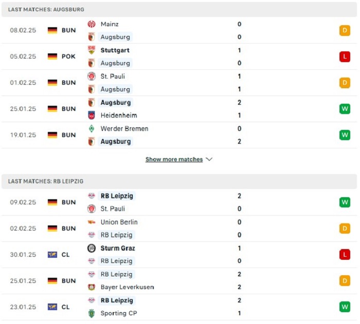 Lịch sử đối đầu của Augsburg vs RB Leipzig