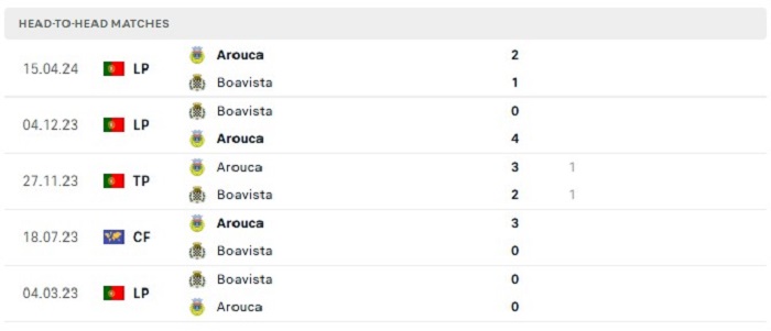 Lịch sử đối đầu của Boavista vs Arouca