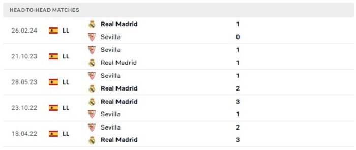 Lịch sử đối đầu của Real Madrid vs Sevilla